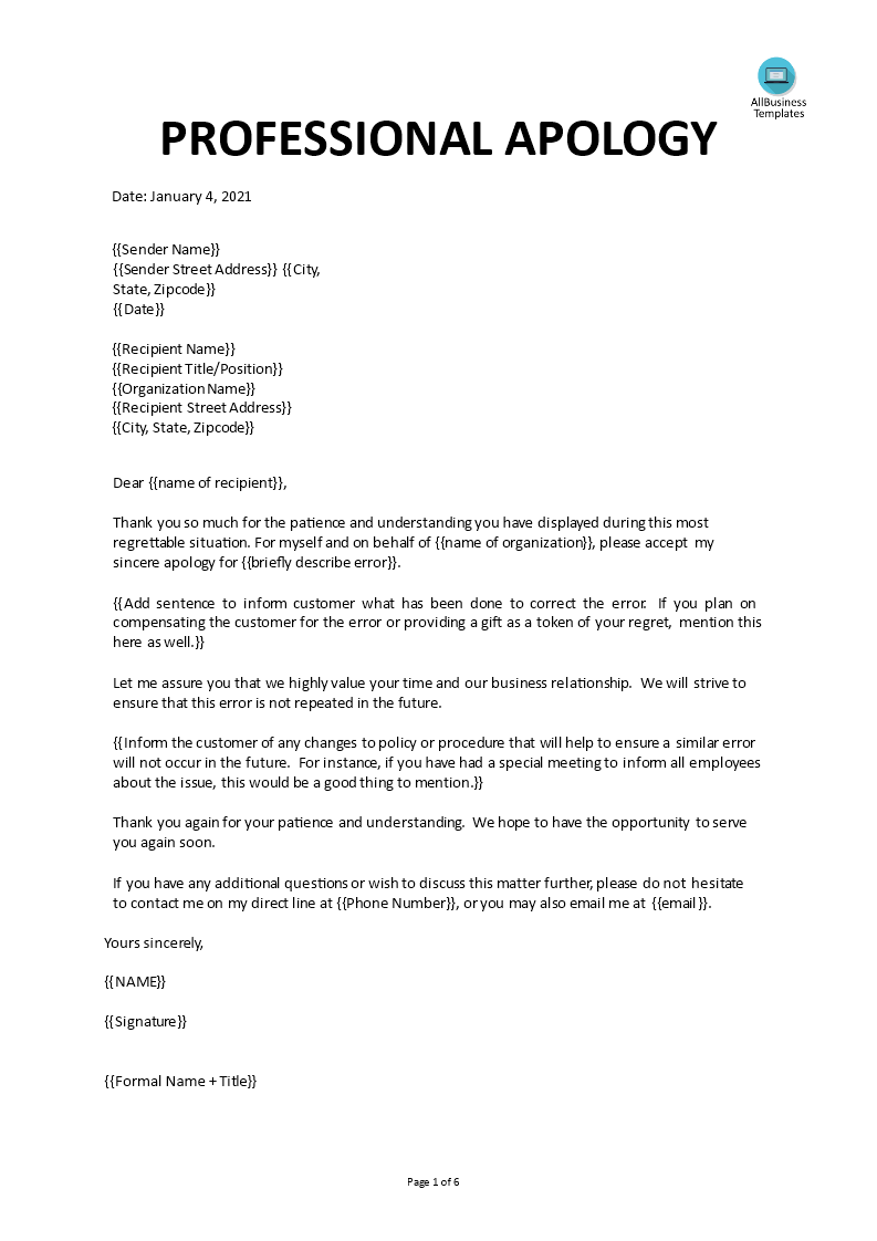 Telecharger Gratuit Business Formal Apology Letter