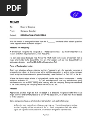 Director Resignation Board Of Directors Social Institutions
