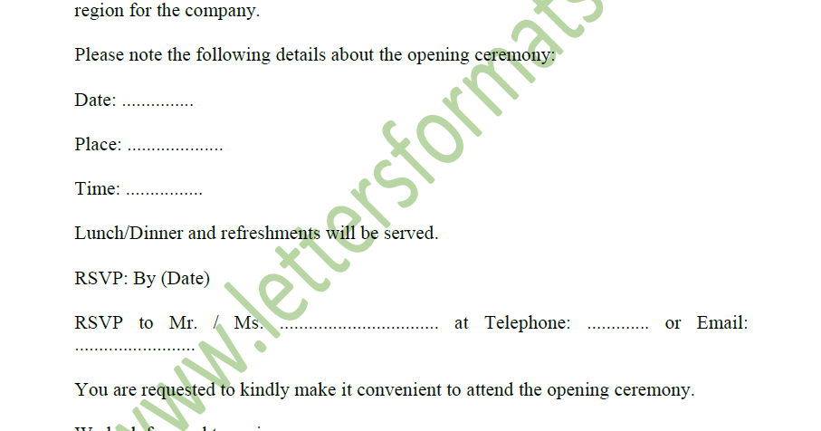 Letter Of Invitation To Grand Opening Ceremony Sample