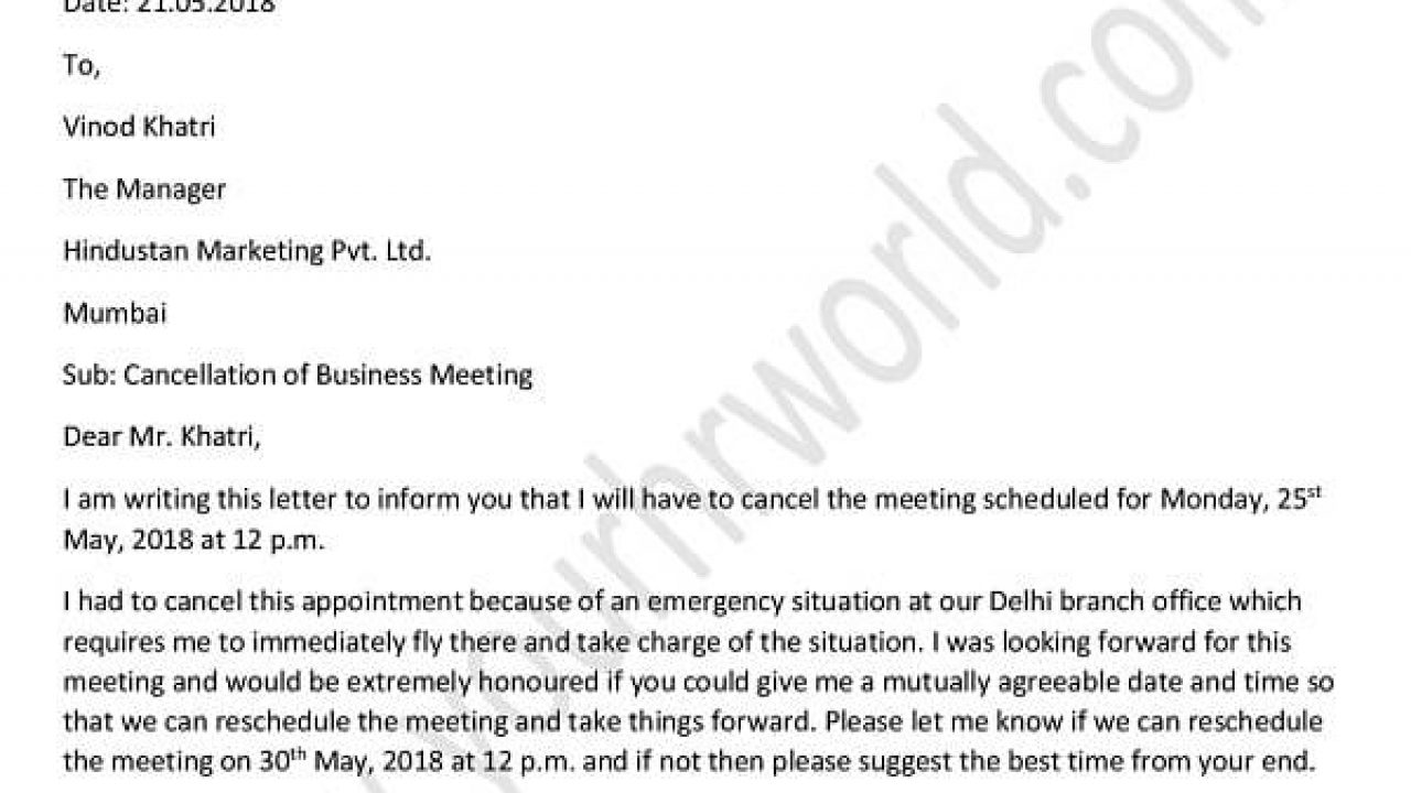 Meeting Reschedule Letter To Participants Word Excel Templates