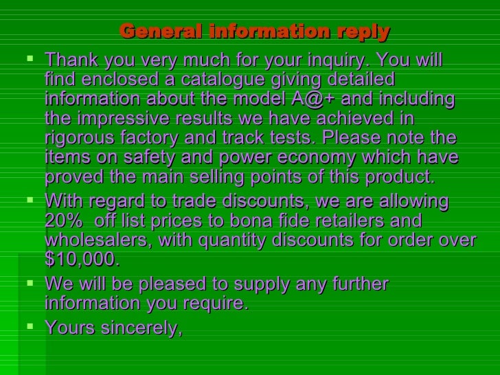 Letter To Respond To An Inquiry About Products Or Services Letterspro Com