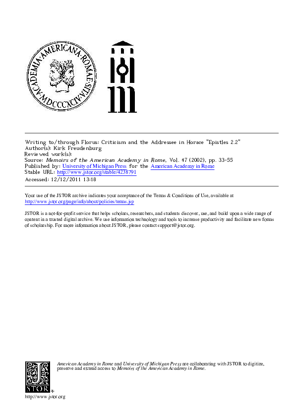Pdf Writing To Through Florus Criticism And The Addressee In Horace Epistles 2 2 Kirk Freudenburg Academia Edu
